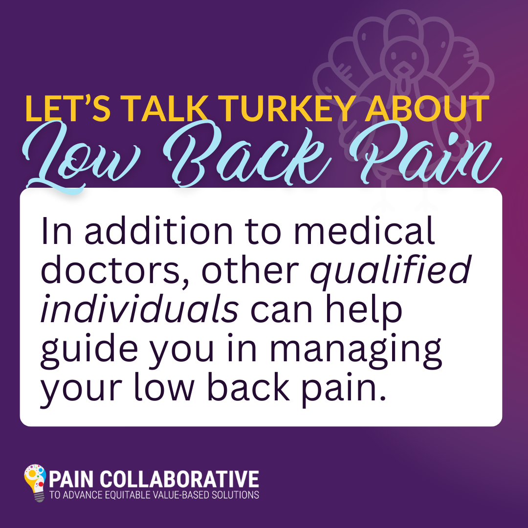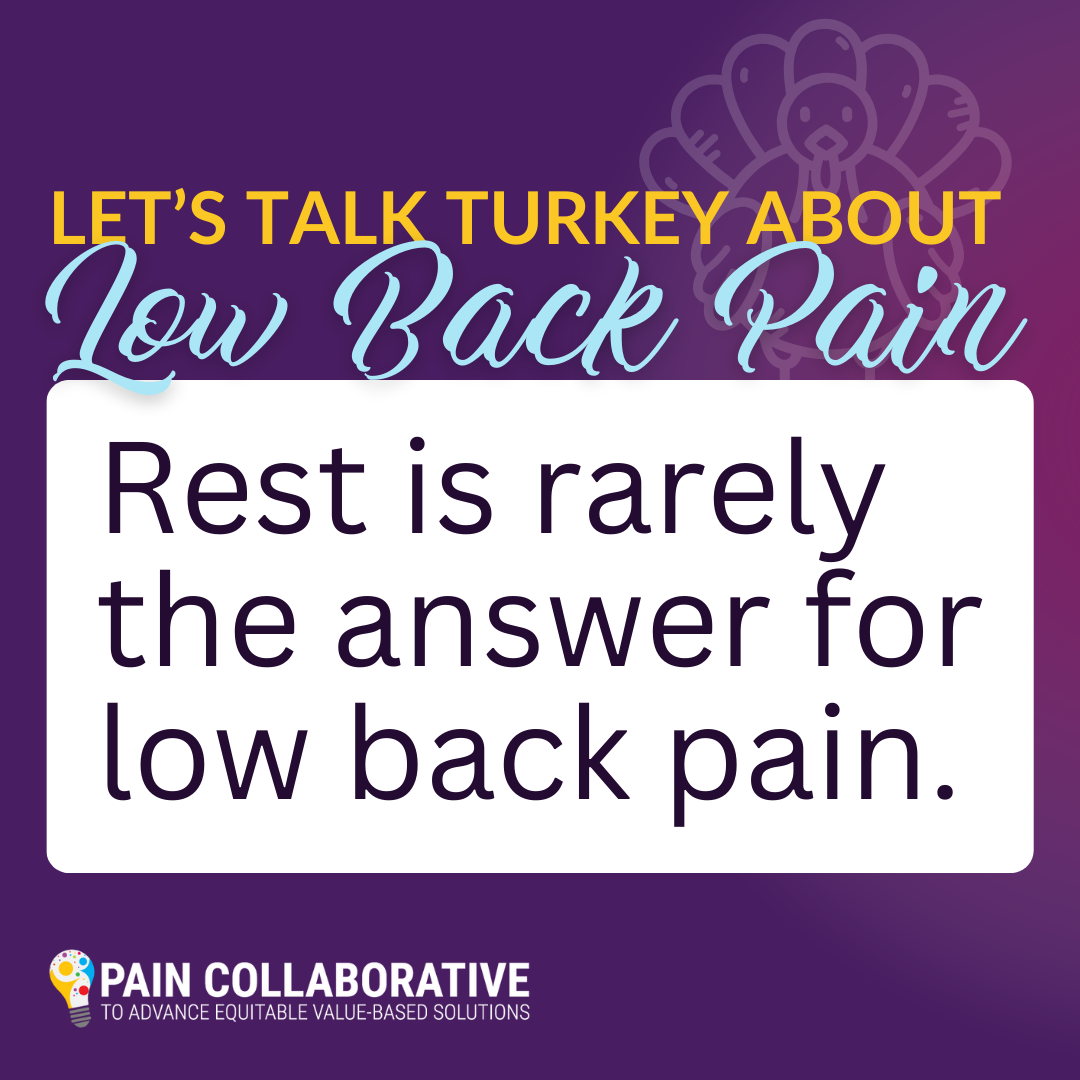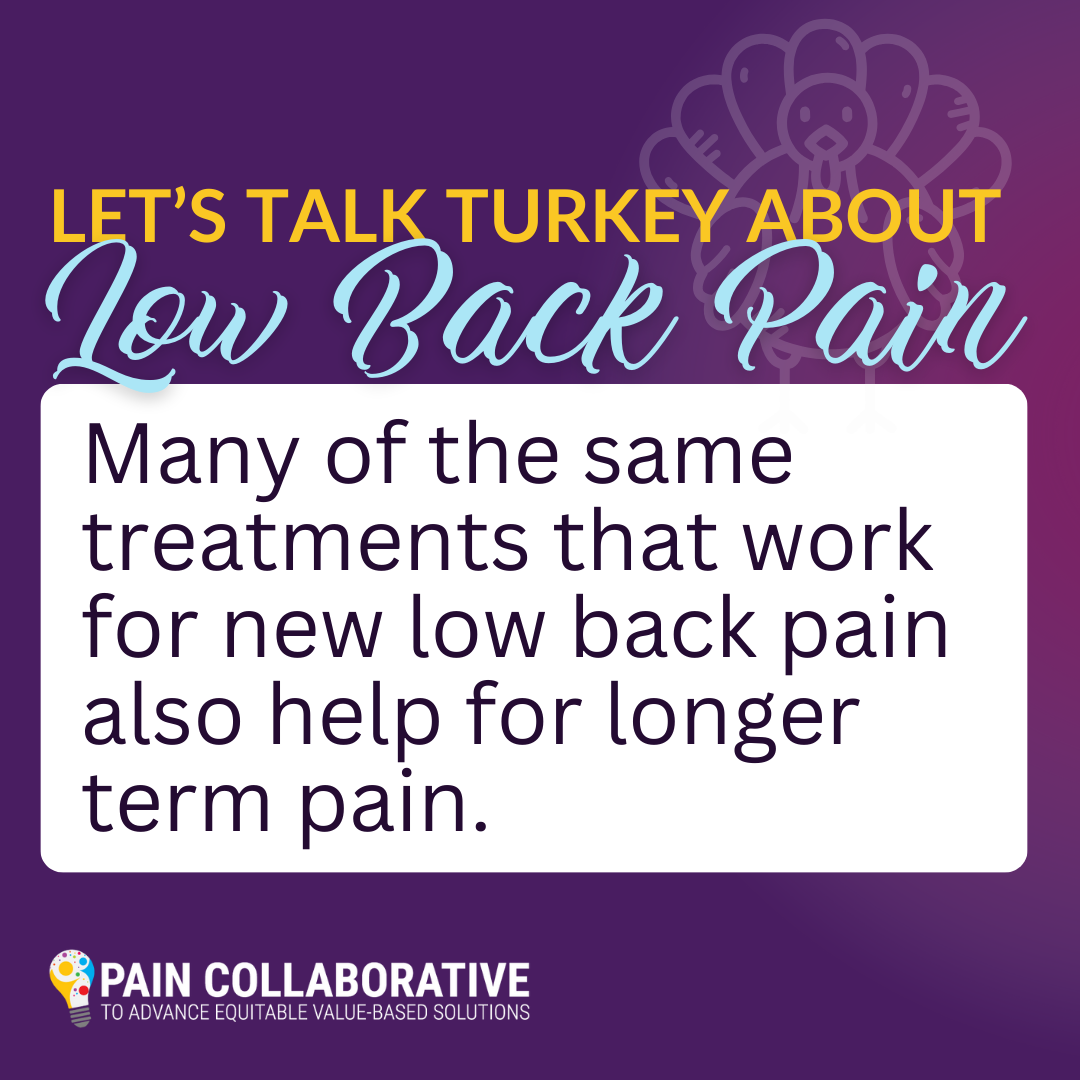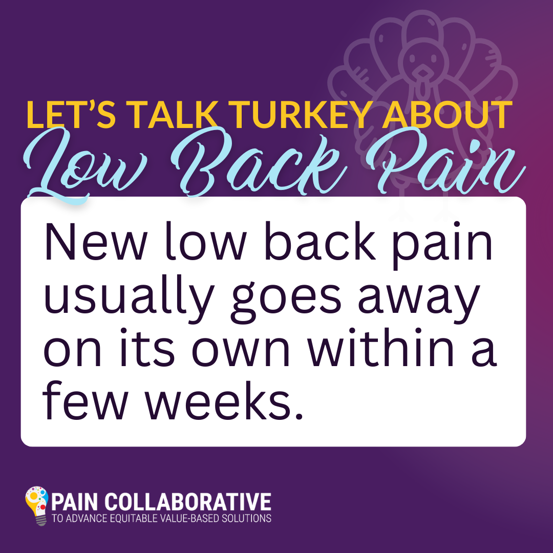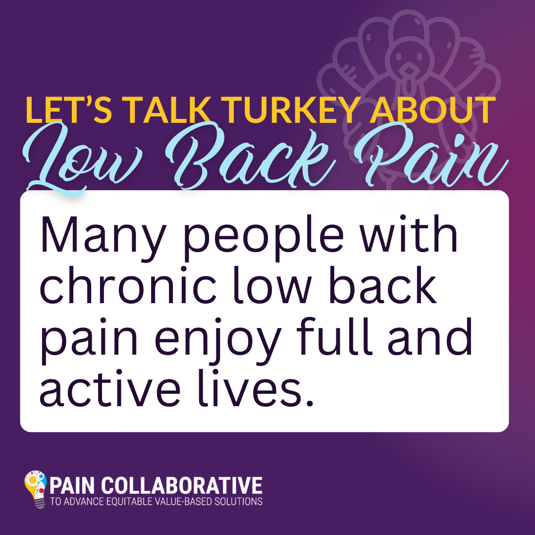 Instead of talking about politics around the Thanksgiving dinner table this year, the Pain Collaborative invites everyone to join “Talk Turkey” about low back pain. It is time to clear up common myths and learn the realities.